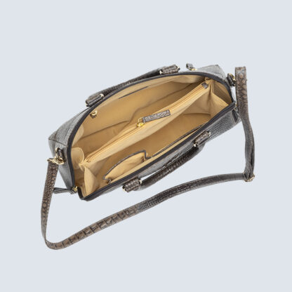 This high-quality genuine leather hand bag is an ideal companion for those who are all about work & style. Specially designed interiors add to its functionality while silver colored metallic trims add to its ageless charm. The additional adjustable strap makes this bag versatile as it can be carried as a cross body sling bag or a shoulder bag depending on how you wish to carry yourself. The spacious main compartment along with an internal zippered pocket for keys and also slip pockets for easy access makes it perfect for everyday use.