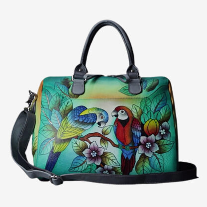 Individually Hand painted BagThis genuine leather hand painted ladies shoulder bag has one main compartment with top zipper closure, one zipper pocket on the back side, inside back one lining zipper pocket, inside front phone case and slip in pocket with adjustable shoulder handle.