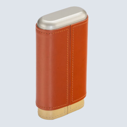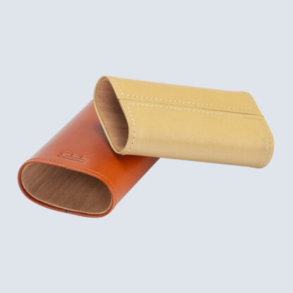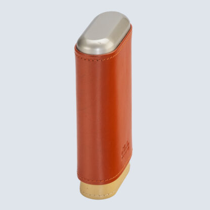 It holds 3 cigars of up to 54 ring gauge. This is a genuine leather cigar case which is a stylish and sturdy vessel that can keep your precious cigar safe. The inside cedar wood lining keeps the authentic aroma and freshness of the cigar intact. Its telescopic function fit, easily adapts and adjusts to the size of cigar. The frosted metal top crown is a compliment with the beige bottom part and makes it more attractive.