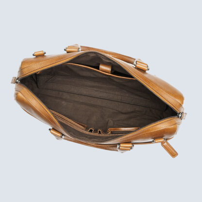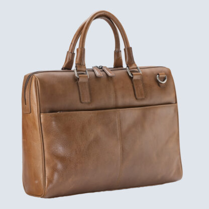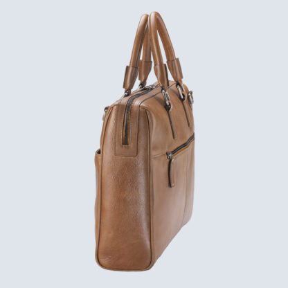 This genuine leather men’s bag boasts a dedicated laptop sleeve perfect fit leather adjustable laptop bag has a patent pending system that allows the user to adjust the laptop compartment to provide a custom fit experience for their laptops. The exterior zipper, inside velcro pad and retractable leather handle makes this leather bag stylish.