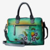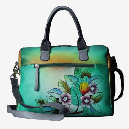 Individually Hand painted BagThis genuine leather hand painted ladies shoulder bag has one main compartment with top zipper closure, one zipper pocket on the back side, inside back one lining zipper pocket, inside front phone case and slip in pocket with adjustable shoulder handle.