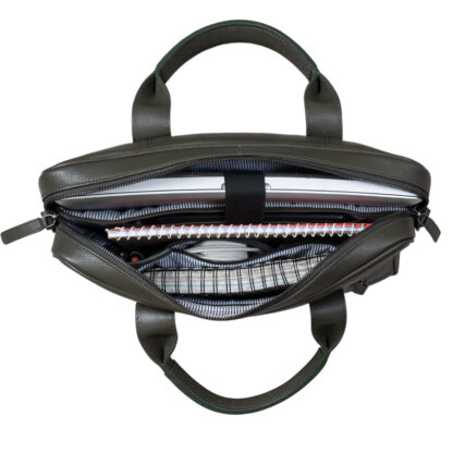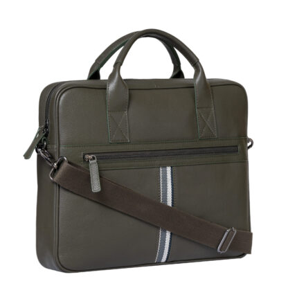 This laptop bag is a testament how office accessories can be a trendsetter on their own accord. Handcrafted with real nappa leather in a rare olive shade, this bag has a lengthy shoulder strap with handles, allowing greater flexibility to style in various ways. A special weave design in the front makes this bag stand in the spotlight wherever taken.