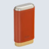 It holds 3 cigars of up to 54 ring gauge. This is a genuine leather cigar case which is a stylish and sturdy vessel that can keep your precious cigar safe. The inside cedar wood lining keeps the authentic aroma and freshness of the cigar intact. Its telescopic function fit, easily adapts and adjusts to the size of cigar. The frosted metal top crown is a compliment with the beige bottom part and makes it more attractive.