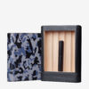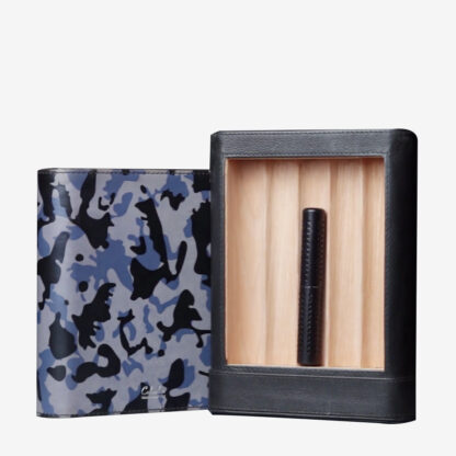 This is a sliding travel humidor. The inside is cedar lined with a fixed separator to keep your cigars intact. It comes with a detachable humidifier stick to keep your cigars in pristine condition even during travel. This portable cigar humidor is crafted in camouflage print genuine leather exterior.