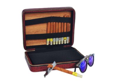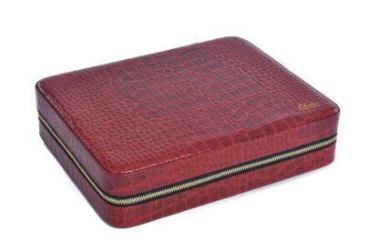 Embrace a posh look with this zip-around cedar-lined travel humidor. The croco-printed leather surface exudes luxury, while a soft fabric separator safeguards precious cigars.
