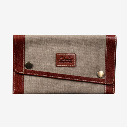 This canvas leather combination tobacco pouch comes with a vintage outlook. The antique finish snap closure buttons are real compliments with the retro style. Inside the pouch, a cigarette paper pocket for the rolling paper is added.