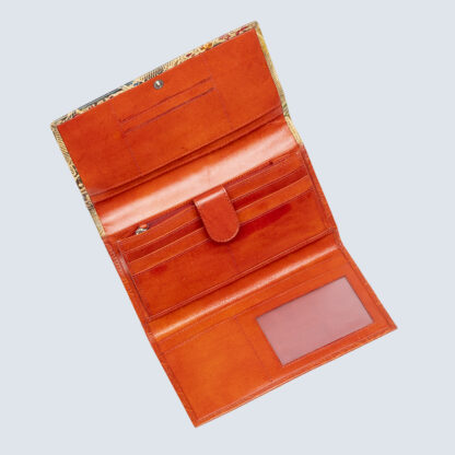 This genuine leather wallet depicting local tribal art individually hand painted by our skilled master artisans. A must have for those willing a make a statement on the art of fine living.