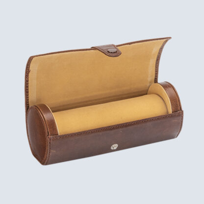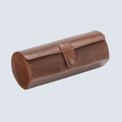 This is a genuine leather travel watch cone roll with cylindrical shape and button closure. It protects the watches against dust and fingerprints. The leather matching stitch offers style and elegance. It is useful for home, working, traveling, and business.