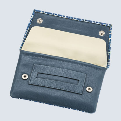 Genuine leather tobacco pouch with hand tooled technique on flap.